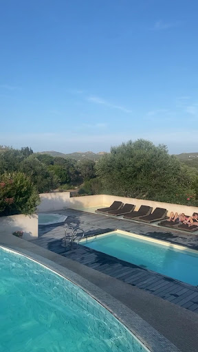 Lovely hotel, we think we might have got a room upgrade as we had more than expected in our room however it was the very top of the resort with a few steep hills to contend with so wouldn't be ideal for those less able. For us it was great and enjoyed the views just less so the walk back up from breakfast/pool. Believe someone lives above who were very grumpy with the children which is not ideal for hotel guests. No WiFi unless you pay a lot extra which is great to keep the kids off the TV/devices but also a poor signal so not helpful trying to research your days ahead, they do have free WiFi by the pool but it's so slow it's close to pointless. The main pool is great for the kids and kept them amused most days, sunbeds can be an issue at times but generally available, the others pool area could do with a bit of attention but I guess they are secondary. The restaurant battles with the wasps as best they can with everything being outdoors, but this did provide drama each day with the kids fighting for their breakfasts before the drinks had a wasp in or their food was eaten and wasted. Continental breakfast was fine but would be great to have eggs as an option to compliment. The restaurant in an evening is fantastic, only two options for the main from the choice of a set menu. We ate here 4 out of 7 days so shows we liked it. Even made one of our less adventurous kids experiment and enjoy food a bit more, our other is gluten free which proved more difficult but that was an issue for all of Corsica sadly for her. The owners were friendly enough, not sure how often they have their own friends visiting but we felt a lot like we were interrupting a party a lot of the time which was an unusual atmosphere. It was also difficult to understand who worked there and who didn't at times for the same reasons but guess that might have been bad timing. Overall we'd recommend as a choice if visiting the area, the approaching road could do with a lot of attention with endless potholes but not sure how much say they have in that. Corsica as a whole has so many lovely places to see, it's just a lot more expensive than we'd previously been aware of so not for anyone needing to watch...