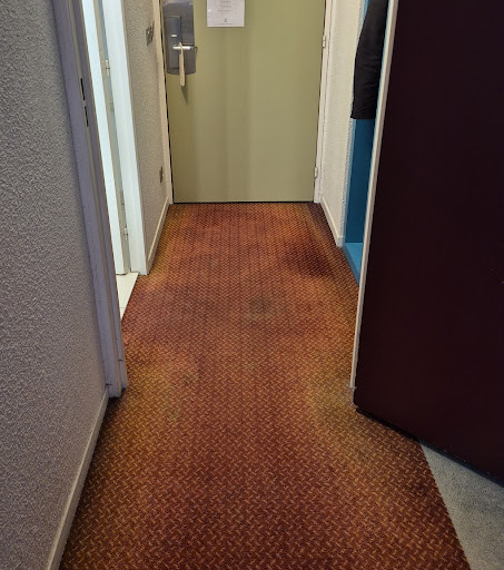 At breakfast, I noticed small insects crawling on the floor of the dining area — a very concerning sign of poor hygiene. To make matters worse, one of the chairs I sat on broke under me, losing a leg entirely. The lobby also had a very unpleasant odor, but what stood out the most was the pervasive dirt: stained carpets and discolored floors everywhere.