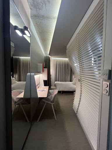 Pros of the hotel: *The staff is very nice, especially at the reception. *The concept of the hotel is superb. I loved the Club area with food and drinks that are included in the price of the room. The club itself is spacious and is a great area especially for those who need to work. There is water (sparkling and none), coffee from a machine and soft drinks for free. The small free pastries - cookies and some cake - are very delicious. They also offer food and drinks for a price. The club makes you feel like it's some kind of an exclusive thing, like those frequent flier lounges in airports (even though every hotel guest has access). *The rooms look great - the unique design makes it a distinct experience. It does not look like your cookie-cutter every-other-hotel-room. One flaw in the design though is the see-through bathroom. It's nice, but if you're staying with a friend or someone who you're not very intimate with, then it is awkward as you can see the person when they're sitting on the toilet... *The location is great. There's a tram right outside and it can take you to the old town in a few stops. There are a few lunch/dining options around as well. *Noise insulation - my most important criteria - is superb. We were staying in the 8th floor so no noise from the outside. We didn't hear anything from other rooms, so I assume that the hotel is built with noise cancelling in mind. The doors are thick, so little noise comes from the corridor. *The soap and shampoo are very nice - nice bottles and super nice smelling. The linen sheets is a great choice, loved them. And they have two pillows - square and longer one, so you can choose which one you prefer for the night.