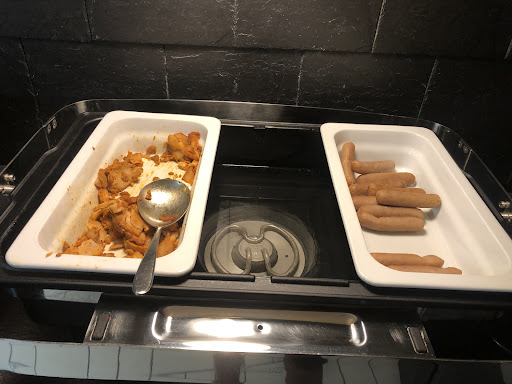 The breakfast was a mixture of pastries, cereal, yogurt, bacon, sausages and eggs.