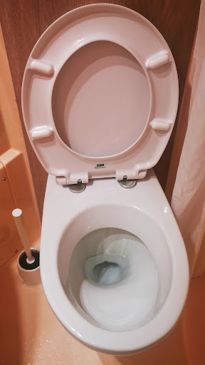 The bathroom - the room where one attempts to become clean in spite of the mouldy shower curtain and inhabited cracks - is a horror show. It's impossible to take a shower without kicking the toilet on the way out, but try, because there seems to be a risk of disease upon contact. Speaking of which, I don't want to know what the stains on the toilet are. There is hot water, but you must choose between scalding or freezing.