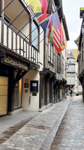Read moreThe Hotel is very well situated in the old picturesque part of Troyes where all the old buildings lean the most. The hotel has the attraction of underground parking, which is very useful. However the signage from the car park to the reception is minimal. Was this a warning that the hotel did not really want you and ran better without guests?||||A longish walk for my lovely wife, Wilma our gorgeous dog , and me, the old man ensued until we reached the reception, where we were greeted by the man on the reception desk. Greeted is perhaps the wrong word. He acknowledged us without any welcome whatsoever.||||He told us we were in room 101 and wanted payment up front. Did we look that untrustworthy? I think not.||||We paid and took the lift to the first floor with no offer of help with our luggage. We opened the door. It was not a pretty sight. Dark and dingy with a air con machine or something blowing away just outside the window. Rachel was already out of the room before I turned round to say we won't stay here! It turned out this was the disabled dog room. Yes, we had a dog, but neither she nor either of us were disabled.||||Back at the front desk we told the man that we did not like the room and could he offer us something else. He was a little surprised. I could tell because he raised his right eye brow. He offered us room 402 instead. Off we traipsed again without the offer of any help.||||This room was a fair bit better and had views over some roof tops of Troyes. The bathroom was large. The "room" housing the toilet was tiny. I am only 5ft 7" and when seated in there, my knees almost touched the door. ||||The bedroom carpet was that awful dark beige/minky brown colour. The sort of colour that looks dirty even if it is not. We decided not to walk barefoot on it just to be on the safe side. ||||The bed was comfortable. We slept well. ||||Breakfast for what is classed as a 4 star hotel was poor. Pre cooked scrambed egg sitting on one side of a warmer and bacon on the other side. Not a nice sight for veggies. There was an average fruit salad. Hard boiled eggs. (not in the fruit salad) a selection of cheeses, yoghurts and breads. There was one small coffee machine. If there was a rush for coffee then people would have to wait a long time.||||So for 228 euro which included 10 euro for doggie and 12 for parking this was a very over priced hotel. How it keeps its 4 star rating is beyond us. The man on reception at 5pm Monday 23 January matches the hotel perfectly. Cold, unfriendly but functional. Apart from the parking and location it is a soulless place and completely lacks any...