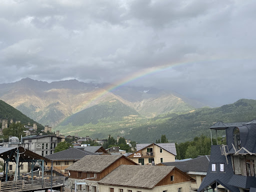 We stayed for 4 nights in mestiatour guesthouse and we had a great time. The location is perfect: very near the central square and right next to panorama bar, where you can have dinner. However, there's no loud noise from that bar so don't worry about that. ||They have renovated quite a bit since the picture it shows here on TripAdvisor. They now have a sort of covered terrace outside where the guests can have breakfast. It's a nice place to sit and breakfast is big and usually included: eggs, bread, cheese and or ham, salad and something sweet like pancakes or cake. |Our room was also very new because it still smelled like paint sometimes. It was clean and the beds were a bit hard but I prefer that. It's not a reason not to like the room in my opinion. WiFi was good (they have 2, ask for the other one if you have trouble). And we got extra blankets when it was a bit chilly.||Inga, our host, was very friendly. We could have breakfast early on the day we left, which was very nice! Sometimes we had some misunderstandings because of differences in proficiency in English but we...