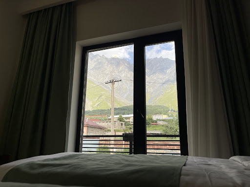 Готовьтесь, отзыв будет длинный и очень положительный 😌||||Мы ехали из Москвы в Тбилиси на машине. Путь был очень долгий и утомительный. Нам пришлось провести три дня в пути, и простоять на российской границе 13 часов. Не смотря на то, что от грузинской границы до Тбилиси ехать всего 2 часа, мы решили остаться на ночь в Степанцминде (Казбеги). Начали искать отели, и совершенно случайно наткнулись на это замечательное место. Нам понравились фотографии и цены, но самым главным фактором было, чтобы отель был pet-friendly. ||Обо всем по порядку. ||Мы связались с отелем в 3 часа ночи. Ответ был быстрым и очень вежливым. Для нас нашёлся номер (кстати, единственный свободный), но номер был на двоих, а нас трое. Нам предложили поставить в комнату раскладную кровать, и мы согласились. С нами была ещё кошка, которая создала нам некоторые трудности во время подбора отелей. Но здесь нам сказали, что никаких проблем нет, и мы можем заселиться с ней. ||За неё не взяли отдельную плату! Мы были в шоке, мы порой платили за ее размещение больше, чем за своё. Но не в этом отеле. ||||В 4 часа ночи мы прибыли в отель. Снаружи выглядел очень мило. Небольшой и стильный. Милая девушка встретила нас очень тепло, не смотря на время. Мы быстро все оформили, и нас проводили в комнату. У нас было ощущение, что мы пришли к себе домой, это было очень приятно. ||||Отель внутри очень красивый. Дизайн великолепный, все чистое, новое, и свежее. В вестибюле и холле очень в тему расставлена винтажная мебель и разные интересные вещи, и музыкальные инструменты, которые можно долго рассматривать. Видно, что отель создавали с большой любовью. ||||Комната. ||Небольшая комната с балконом (и как оказалось утром, просто невероятным видом!) на балконе есть столик и стулья. ||В комнате чисто, дизайн минималистичный, очень уютно! Есть все необходимое, вода, тапочки, полотенца, гель для душа, шампунь, и тд. ||Для двоих идеально, но и для третьего вполне достаточно места. ||В ванной просторно, вся техника новая. ||||Отдельное и очень большое внимание я хотела бы уделить спальному месту. Я бывала во многих отелях разных стран. Конечно отельное белье всегда нравится, но здесь…я просто не могу передать словами, как нам всем спалось. Мягчайшие простыни и одеяла. Все свежее. Просто идеальный матрас. Подушки идеальной жесткости (точнее мягкости). Ложишься будьте в облачко (которое как надо поддерживает спину и голову), и спишь как младенец. Поверьте, я не преувеличиваю. ||Кстати, очень важно, что раскладная кровать ничем не уступала основным (как это обычно бывает), мы даже спорили, кто будет на ней спать. ||||Проснувшись утром, нас просто поразил вид с балкона. Вид на горы, конечно. Фото обязательно приложу. ||||Так как мы приехали под утро, мы конечно же проспали завтрак. Уже думали, что остались без него, но забыли, что находимся в Грузии ♥️. Для нас специально накрыли стол, на котором было… все. Абсолютно все. Завтрак был очень вкусный, разнообразный и сытный. Было все, что обычно бывает в отелях, но ещё и с грузинской ноткой. ||Мы были единственные в зале. Никто не посмотрел на нас косо, из-за того, что мы опоздали, и пришлось накрывать стол специально для нас (учитывая, что для всех был шведский стол). Наоборот, у нас спрашивали, не нужно ли что-нибудь ещё, всего ли хватает, предложили приготовить дополнительные блюда. Очень по-доброму. ||||Отношени