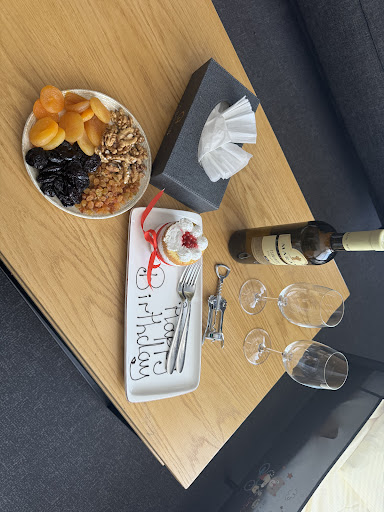 Read moreFirst of all I want to thanks to all staff members who work in this hotel for making our stay smooth, comfortable and enjoyable! Reception members are helpful and speaking English very well, house keeping members are cleaning very well, kitchen team made breakfast very delicious. We received from hotel a cake with wine and nuts for my birthday which is amazing. Our room category was Suite so we had a 2 washrooms, 2 TVs (one of them is smart TV), shower, bathtub, balcony with amazing view, coffee machine, sofa, baby crib etc. Room has a two different types of sockets: double and triple holed. Location is amazing, near to the hotel is Carefour supermarket, park, Italian restaurant and in a walking distance to other restaurants etc. In the lobby they have umbrellas for rainy days. The thing which I would add it's AC, which we can't control in our room, so when it's hot in the day time we feel hot, at night it's in heating mode which was good, but hotel must switch it during the hot time for cooling mode or let the guests do it by themselves. Note, that on the check out date you will need to pay for water which is not a big deal but still not really necessary to charge your guest for 1-2...
