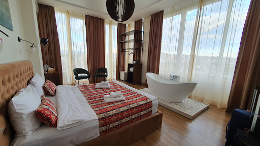 Read moreFor the space, price, and location this hotel gets 5 starts in my book. We stayed in one of the suites with a jacuzzi (on the 7th floor) and the views of the city were truly amazing (and unparalleled with a lot of the places we visited) - especially from the bath at night. High ceilings and lots of windows provided tons of natural light and views, and we had a nice little balcony off the front as well. Breakfast is served on the 9th floor, and has a lovely terrace as well. The staff was very helpful and kind (as were most people we encountered on this trip!).||||The location was amazing - 10-15 min walk to the cable car, and right around the corner from Liberty Square. It was a short walk to Old Town as well (pretty much everything was maximum 10 minutes, depending on your pace) and there are loads of great restaurants and bars in the area. We walked pretty much everywhere, and used Bolt (like Uber) when it was too warm or we wanted to move a bit quicker.||||We had a small issue with the AC unit the first night, but after that it worked perfectly and kept the main room with the bed pretty cool. Keep in mind that the rooms will warm up a bit from the morning to afternoon with all the sun, but they cool off again pretty quickly. The only downside, which was small, was that there is not AC in the bathroom, nor were fans available, so it got pretty hot in there during the day. If you are a light sleeper, I'd recommend a sleep mask as well, as the curtains are not very dark (but it was nice to get up with the sun and get our day started). ||||There is limited parking under the hotel, but I would call ahead to make sure there is a a...