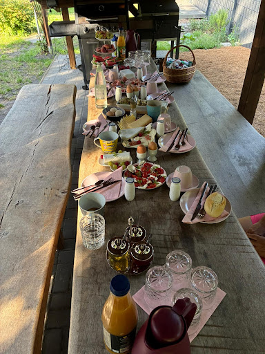 Wir waren 4 Tage - 3 Nächte im Juli dort gewesen, mein Mann unser Hund Milo und ich..Geschlafen haben wir im Souterrain, was bei den hohen Temperaturen die wir die Tage hatten eher ein Vorteil war. Das Gemeinschaftsbad und auch die Gemeinschaftsküche waren super sauber und ausgestattet...Es fehlte an nichts..Wir hatten das Glück trotz vollem Hauses, jeden Tag draußen zu frühstücken und auch Grillen zu können...Obwohl der große Sitzbereich für alle gereicht hätte. Wir genossen es sehr, in der Größe des Grundstücks und die gegebenen Möglichkeiten voll und ganz zu genießen. Frische Eier von den eigenen Hühnern , super freundliche Gastgeber die immer erreichbar waren, die vielen Abkühlungen im sauberen Pool und am letzten Abend das Sitzen am Lagerfeuer waren eine schöne erholsame Auszeit. Kommen...