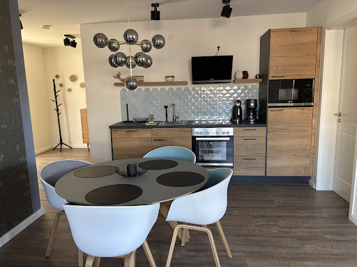 Read moreDer komplette Komplex liegt sehr zentrale und ist modern eingerichtet. Es gibt da nur ein paar Wohlfühl Punkte, die mir persönlich fehlen. In der Wohnung 8, liegt die Terasse im Innenhof, dort kommt nie Sonne hin. Das Schlafzimmer liegt direkt an der Hafenstrasse. Das ist auch durch das Kopfsteinpflaster extrem laut. Nachts kann man nur mit geschlossenen Fenster schlafen. Die Terassenmöbel haben keine Auflagen, auf die Dauer ist das extrem hart. Das Sofa und die Sessel in der Stube sind mir zu hart. Es gibt keine einzige Decke in der Wohnung. Die Dusche hat keine Tür. Wenn man nicht aufpasst, setzt man das ganze Bad...