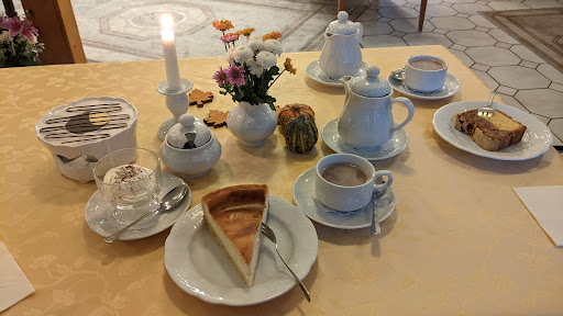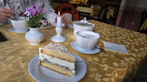Read moreWir waren mit drei Kindern und zwei Erwachsenen dort. Von außen hat uns das Café nicht angesprochen und wären fast umgedreht. Als unser Kleinster dann vor der Öffnungszeit an die Tür bollerte, wurden wir äußerst freundlich empfangen. Die Torten und Kuchen wurden in die Auslage gestellt. Jeder von uns hat sich einen anderen Kuchen oder Torte ausgesucht. Jeder von uns suchte sich auch ein Getränk aus. Alles mega lecker und darüberhinaus noch günstig. 34 Euro war für die Auswahl ein wirkliches Schnäppchen. Wahrscheinlich werden wir auch in nächster Zeit die Herbergsmöglichkeit ausprobieren. Macht weiter so. Vielleicht noch ein anderes Schild für Auswärtige 😉 Unbedingt weiter...