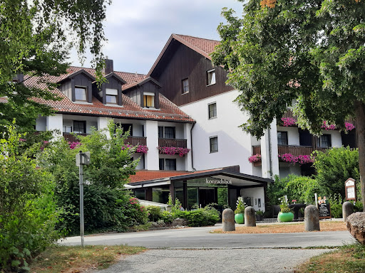 Read moreSehr gut geeignet für kurze Auszeit (3-5 Tage) mit bisschen Wellness. Hotel insgesamt und Zimmer sehr sauber und gemütlich, sehr schön und mit viel Liebe zum Besonderen eingerichtet. Alle Mitarbeiter sehr freundlich und hilfsbereit. Essen ist Sterneküche, Frühstück sehr viel Auswahl, Qualität top. Zugang zur Fürstentherme, diese ist allerdings renovierungsbedürftig und das Angebot ist etwas dürftig. Nicht alle Bereiche dürfen von Konradshof-Gästen genutzt werden. Therme für 2 Stunden ok, für länger ist zu wenig geboten. Gut für abends nochmal kurz 1 Stunde ins warme Wasser. ||||Lage: ||Sehr ruhig gelegen, gute Spaziermöglichkeiten mit Trimm-dich-Pfad, viel Natur. Kleiner Ort, nur Hotels/Gästeunterkünfte, größere Therme (Wohlfühltherme) fußläufig zu erreichen. Wenig Geschäfte. Ideal für Ruhe und Erholung in der Natur.||||Zimmer:||Wir hatten 2 Einzelzimmer mit Verbindungstür - sehr zu empfehlen. Man ist "zusammen", hat aber doch jeder seinen eigenen Bereich (Bad, Bett). Zimmer schön eingerichtet, gemütlich, hell, sauber, alles da, was man braucht. Schöne große Dusche, viele Ablageflächen im Bad. Bett und Sessel sehr bequem. Viel Platz, viele Verstau-Möglichkeiten, kleiner Kühlschrank. Sehr nette Überraschung: Nach Ankunft haben wir einen kleinen Obstteller bekommen.||||Service:||Alle sehr freundlich, aufmerksam, hilfsbereit, zuvorkommend. Wir hatten keine besonderen Wünsche oder Beschwerden, was ich nebenbei von anderen mitbekommen habe, wurde sehr schnell, freundlich und kompetent reagiert.||||Gastronomie:||Service im Restaurant schnell und kompetent. Küche hat Sternequalität! Portionen sind sehr groß, Qualität und Preis-Leistungsverhältnis spitze. Auswahl sehr gut, es ist für jeden was dabei. Atmosphäre im Restaurant sehr angenehm, ruhig, viele kleine gemütliche Nischen. Gerichte waren abwechslungsreich, Mischung aus regionaler Küche und "besonders", aber nicht zu ausgefallen oder "abgehoben". ||||Sport / Unterhaltung:||Lage ist sehr ruhig, Wir haben keine Freizeitangebote genutzt, aber laut Prospekten und Kurkarte ist für jeden etwas geboten, teilweise mit Kurkarte auch sehr vergünstigt oder sogar kostenlos (Golf, Nordic Walking,...