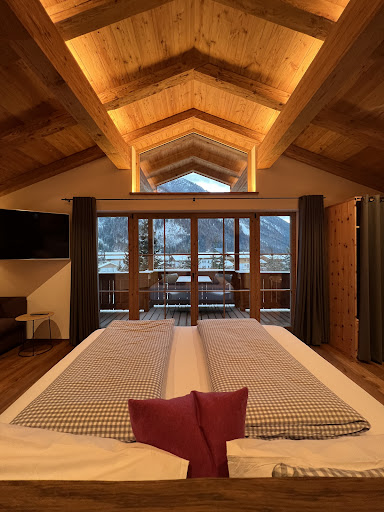 Read moreSehr schöne neue luxuriöse Chalets die im Dezember 2021 eröffnet wurden. Es ist alles da was man für einen erholsamen Urlaub braucht. Supermarkt, Metzger, Bäcker und Restaurants sind zu Fuß zu erreichen. Ein toller Startpunkt für Wanderungen, Radtouren und Ausflüge. Wir waren im April 2022 mit unserem 6 Monate alten Sohn und einem befreundeten Paar hier und die super freundlichen und hilfsbereiten Gastgeber haben uns ein Reisebett, Stillkissen, Wickelunterlage, Babybadewanne, Babybademantel, Spielzeug und ein Buch zur Verfügung gestellt. Was uns sehr geholfen hat, weil jeder der ein Baby hat weiß was man alles mitnehmen muss. Das Chalet hat auch eine sehr schöne Terrasse mit Hot Tub, Außendusche und großem Tisch von dem aus man einen tollen Blick in die Berge hat. Gegen Bezahlung kann man sich auch aus dem Weinkühlschrank bedienen, der neben Wein und Prosecco auch Bier beinhaltet. Wenn man das Haus nicht verlassen will kann man auch in Gläser eingekochte Gerichte kaufen. Da ist wirklich für jeden Geschmack was dabei, sogar Kuchen im Glas! Die Küche hat alles was man braucht, Kaffeemaschine in der schon Bohnen sind, Backofen mit integrierter Mikrowelle, Spülmaschine, Eismaschine, Wasserkocher, Milchschäumer, eingebauter Wassersprudler im Wasserhahn usw. Die Sauna im Erdgeschoss ist sehr schnell warm und im selben Raum ist auch eine Regendusche mit Wasserfallfunktion. Unten in der Tiefgarage ist genug Platz für die Autos und auch die Möglichkeit das...