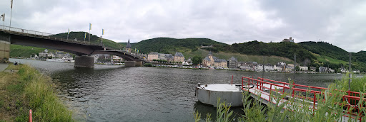 Read moreTuvimos suerte después de dar algunas vueltas por este pueblo medieval, elegimos este hotel por su localización y precio y no nos defraudó.||Lo primero que quiero decir es que animo a todos los viajeros a hacer la "Ruta del Mossela" un rio enorme que se ve rodeado de explotaciones vinicolas, de plantaciones de un precioso melocotón rojo y que me parece que es bastante desconocida, al menos entre los españoles. La mayoria del turismo que se ve por allí es alemán con impresionantes cmapings por toda la ribera del rio y hoteles como este que están en el mismo centro y junto al rio con unas vistas excelentes que en nuestro caso se vieron incrementadas por poseer la habitacion de una terraza sorprendente y eso que estabamos en el primer piso. La habitación modernizada convenientemente con todos los servicios normales y una buena atención, es costumbre en estos sitios si vas en coche que te den un ticket en el mismo hotel con un costo muy razonable y poniendolo en el parabrisas te evitas tener que sacar tickets de aparcamiento. El aparcamiento está junto al hotel y es público bajo el puente y a la orilla del rio con embarcadero por si quieres realizar un crucerito breve por el rio incluso con cena si lo deseas.||La atención mu buena, puede llegar hasta la misma puerta del hotel con el coche aunque una vez descargado el equipaje tienes que retirarlo porque es el inicio de la zona peatonal. Está justo en el puente que de alguna manera servía de comunicación entre las dos orillas del rio en aquellos tiempos diriamos que medievales y con un entorno estupendo para pasear por el casco histórico muy bien conservado, casas torcidas por el paso del tiempo con las típicas vigas de madera. El hotel no es así puesto que está remozado pero gracias al color no desentona y no se pierde el encanto del lugar aunque por fuera puedas ver otros más aractivos. Tiene cafetería donde puedes desayunar bien con horno de pan y bolleria a raudales y simplemente con decir que estás alojado en el hotel todo perfecto, te mezclas con el público que va por la calle pero la atención continúa siendo muy buena. La localización perfecta y el precio razonable dentro de los precios previsibles unos cien euros dos personas con desayuno...