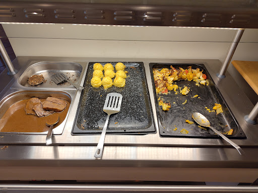 Spezialitäten vom Buffet. Sehr lecker, sagte man mir. Ich solle nicht so spät kommen, sonst sei das Beste weg.Vor dem Essen erkundigte ich mich, zu welchem Preis mein Kind essen könne. Selbst der halbe Preis war bei meinem damals sechsjährigen, der kein Fleisch, eigentlich nichts außer Kartoffeln und Reis ohne Soße aß, sehr viel.Ja, man werde im Restaurant sehen, wie er isst und dann weitersehen. Das Vier-Gänge-Buffet bestand aus einem Süppchen, einer Art trockenem Hackbraten mit Beilage, Bratlingen und Pudding. Enttäuschend. Kein Büffet mit ein Bisschen Auswahl, eher eine Platte/Schüssel pro Gang. Und das schmeckte nicht mal. Was ich meine: es gab 4 verschiedene Dinge, das waren die vier Gänge. Trockener Hackbraten mit kartoffeln(bio, mag sein), Suppe , bratlinge und Pudding. Für 25 Euro. Oder das "Beste" war einfach schon um 18.30 weg, wer weiß.Meinem Sohn wurde eine Suppe angeboten, die er nicht mochte. Dann aß er drei halbe Kartoffeln und einen Klecks Pudding. Weil er aber die Suppe probiert hatte, gab der Service an den Herrn an der Rezeption weiter, " ja, der Junge hat gut gegessen". So teuer habe ich nie wieder 1,5 kartoffeln und einen Pudding bezahlt. Keine Kulanz, Null. Das Schlimmste aber: ich wurde behandelt , als habe ich schummeln wollen und eine dicke Mahlzeit nicht bezahlen wollen. "Der Mitarbeiter hat aber was anderes gesagt". Das fand ich absolut daneben. Ich hatte uns ein schönes Hotel leisten wollen und es war eine dauerhaft bleibende schlechte Erinnerung.