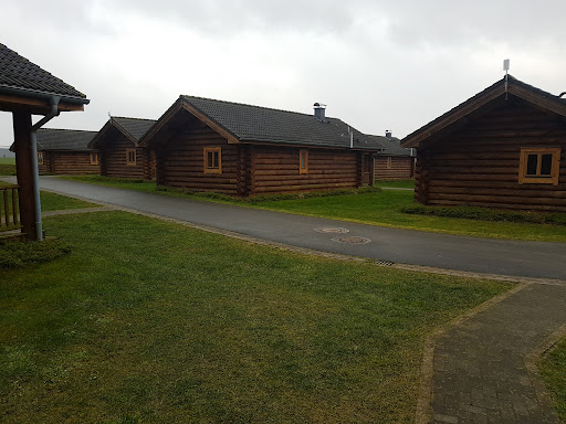 Wir waren Anfang August für 1 Woche dort beherbergt, um dies als zentralen Punkt für Ausflüge zu nutzen. Bereits vorweg: viel Zeit verbrachten wir nicht im Blockhaus. ||||Bei der Ankunft wurden wir freundlich an der Rezeption in der Skihalle begrüßt. Toller großer Spielplatz draußen mit Hüßfburg, Eisenbahn und Biergarten. ||Die nette Dame erkläre uns den Weg zur Blockhütte "Mövenpick".||||Wir gingen zu Fuß dorthin. Parken sollten wir auf dem Schotterparkplatz um die Ecke. ||||Beim Haus angekommen erstmal inspizieren: kleine Terasse mit Tisch und 3 Stühlen, Glastür als Eingang. Die Türscheibe hatte einen Sprung im Glas. MÜSSTE ERNEUERT WERDEN. ||Türe aufgeschlossen und schon steht man im großen Wohnbereich mit Kamin, TV, Safe und Kaffeemaschine. Auch waren ein paar Fläschchen Wasser, Gläser und Tassen vorhanden. Ebenfalls eine große Lampe in der Ecke und ein großes Sitzkissen. Direkt viel mir auf: hier ist kaum Stauplatz. Gott sei Dank hatten wir einen kleinen Reisekühlschrank dabei, denn ein Küchenausstattung gibt es nicht. Was gar nicht ging: die beiden schwarzen Ledersofas waren total abgenutzt und zerkratzt. ||Vom Wohnzimmer aus gehen 2 Bereiche in die beiden Schlafzimmer ab. Rechts ein Schlafzimmer mit Doppelbett, davor das WC. Es war alles sauer, allerdings wäre im WC DRINGEND eine Renovierung nötig. Flecken an den Wänden, Spinnweben an der Decke. Das Fenster lässt sich nicht kippen, sondern öffnet direkt komplett bzw. fällt einem entgegen. Ansonsten WC und Waschbecken sauber, Handtuch vorhanden. Das Elternschlafzimmer sehr sporadisch, auch hier fehlt der Stauraum. Gegenüber der Toilette ein Kleiderschrank, überfüllt mit Extradecken, die man auf dem Boden verstauen musste um seine Kleider einräumen zu können. Das gleiche beim anderen Kleiderschrank im linken Gang Richtung andere Schlafzimmer. Dies genauso sporadisch eingerichtet. Diese Betten standen auseinander. ||Nun zum Badezimmer: klein und modern gehalten. ausreichend Handtücher wie ein Föhn, Seife, Duschgel, Tücher sowie Schminkspiegel sind vorhanden. Auf den ersten Blick sauer, ABER! Die Dusche voller Kalkflecken auf dem Boden, die Halterung für das Shampoo sehr locker, unten und die Griffe der Dusche verkalkt und dreckig.... ganz unangenehm. Hier muss auf jeden Fall DRINGEND renoviert werden. ||||Zum Haus: ist ganz toll mit der Holzoptik, allerdings extrem Hellhörig. Die nette Nachbarschaft meinte am 2. Abend draußen lautstark zu feiern mit Musik, gegröhle und Alkohol. Man hört jedes Wort und es zieht extrem durch die Rillen. Im Winter mit Sicherheit kalt.... und der Boden knarrt fast im ganzen Haus ganz extrem. Was mich als Frau allerdings am meisten stört: der Druck des Wassers beim Duschen geht gar nicht.... Hier müsste auf jeden Fall mal geschaut werden. ||||Housekeeping: naja: es wurden neue Handtücher hingelegt und die Betten gemacht. WC wurde gereinigt, Mülleiner ausgeleert. ABER: am Abreisetag standen noch die benutzten Gläser und Tassen im Haus, die wir am 1. Tag verwendet haben. Denke die kann man doch austauschen? An einem Tag, als wir am Nachmittag wieder zurückkamen vom Ausflug, stand plötzlich eine neue Couch und 2 Stoffstühle im Haus. Die alten Sofas wurden also ausgetauscht. Was aber unangenehm war: die Stühle rochen extrem nah raus, sodass wir sie nach draußen verbannten. Die Couch war fusselig von der Verpackung, unser Kleidung danach dann auch! ||||Unser Fazit: für einen kurzen Aufnenthalt mit Abstrichen ganz gut. Außenanlage und der angrenzenden SnowDome mit Gastronomie echt zu empfehlen. Für Kids ganz toll. KEIN WLAN,...