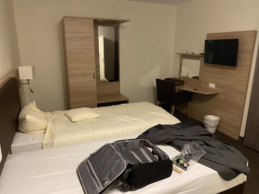 Read moreIch war nur im Hotel und kann über das Restaurant nix sagen. Es wird gerade alles neu gemacht nach einem Brand, daher ist die Einrichtung neu und sieht gut aus. Allerdings finde ich die Licht Verhältnisse sehr sparsam, Außer 2 Nachttischlampen gibt es genau einen Spot in der Decke, das ist zu wenig, ebenso im Bad, 3 Spots über dem Spiegel, das war es. Auch der TV hätte bei dem Abstand zum Bett größer sein müssen, die kosten dafür halten sich meiner Meinung nach im Rahmen. Und wenn wir dabei sind ein Verbesserungsvorschlag von mir, in der Wand an der der TV hängt könnte man gut mit dem Laptop arbeiten, allerdings wäre hier eine Steckdose sehr hilfreich, die würde ich noch nachrüsten, das ist ohne viel Aufwand möglich, auch würde ich die Spots gegen stärkere tauschen und die TV vergrößern. Das man bei einer Ankunft nach 18 Uhr alles alleine finden muss stört mich nicht so sehr, könnte aber für ältere oder anders eingeschränkte Menschen zum Problem werden. WLAN ist gut, nicht mehr Aussetzer als ich zuhause hab. Badezimmer ist bis auf die Licht Verhältnisse auch gut. Alles in allem...