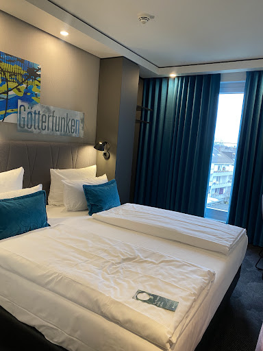 Read moreA beautiful setting inside. I loved the colour scheme. We only stayed one night but I developed a horrible allergic reaction. I know that it was the room as I had a nap after our long travel to get to Bonn. I fell asleep on all 3 pillows (incl the turquoise one) and when I awoke, my eyelids felt heavy and when I looked in the mirror, they were swollen. Rushed off to the pharmacy to get antihistamine. It helped tp reduce the swelling. In the early hours in the morning, I awoke to find my eyelids in a worse state, my cheekbones were swollen and my chest was red. I think it could be the curtains and headboard that triggered off my allergic reaction. We spoke to the man when we check-out and all he said was that it was strange as their items are "hypoallergenic". Not sure how often curtains and headboards are cleaned as the fabric used is very different...