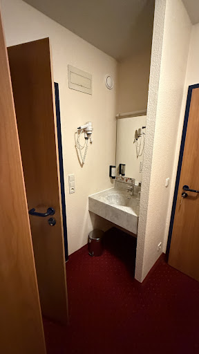 Read moreThis hotel is way too expensive to what it offers.||Food in the restaurant is much less than mac Donald's food. Less in taste and in quantity, but much more expensive. E.G. they managed to ask € 2.50 for a glass of water straight from the tap.||The sleeping area of the room is more or less okay, but the bathroom is awful. The toilet/shower area is made for dwarfs. It's way too small to be usable.||WIFI is also not good. After choosing the hotspot you're redirected to the hotel homepage on which you have to enter both a complicated 9 digit username and complicated 8 digit password.|After not using Internet for an hour or so you have to repeat this process, due to the fact that you've been kicked out.||The staff only speaks a few words of English. If you can't speak German this place...