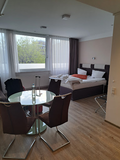 Read moreCosting €166.95 for a one-night, one-guest stay(!), the hotel did offer some adventure. To start with, finding the place was a quest. Located on the 2nd floor of an appartement bloc, the hotel doesn't feature any signs indicating its existence. At the entrance you are welcomed by the building's concierge, who - with the charm of a high-security prison guard - buzz opens a door leading to the lifts. No other person is in sight; the electronic check-in goes smoothly. The room is essentially an L-shaped corridor terminating in a bed. Uninterrupted windows along two walls open onto a busy thoroughfare. A 70s-style concrete high-rises to the right and a busy two-level parking lot to the left complement the view. If you think to settle in for a good night's sleep, you are in for a surprise as the busy traffic (3 lanes in each direction + a tram in the middle) produces a remarkable amount of unrelenting noise. The room is clean (which explains two stars), but the service in non-existent. Is there a breakfast? (For this price, it better be!) You wouldn't know as there is no-one there to ask. A guest brochure in the room is in German (is Frűhstűck the magic word?), but I guess the foreigners are not expected to bother having breakfast. Incongruously, there is a detailed instruction in English on how to operate the telly, which doesn't have a single non-German speaking channel (out of boredom I checked them all). This is an achievement in itself for a satellite TV network.In summary, you must be seriously desperate to stay at this place....