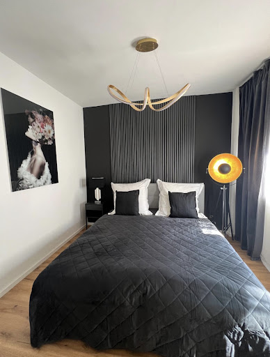 So it seems to me that it is an Airbnb decorated with black colours to give the impression of style of boutique hotel.