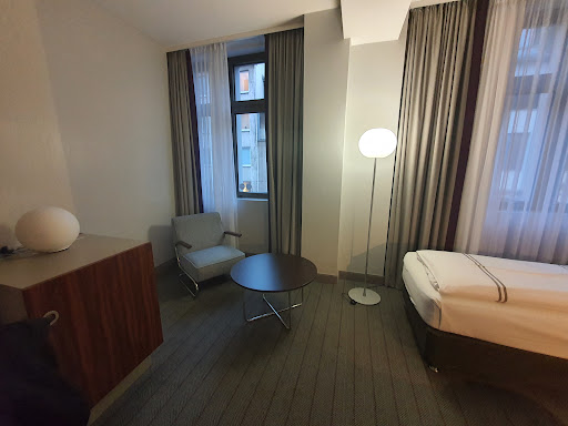 Read moreWe booked this hotel back in the Spring for our Christmas market visit. If you want to travel around by train, this hotel is perfectly located as it's moments away from Hansaring train station.||The hotel - we stayed for 3 nights and only saw 5 staff members throughout our entire stay. Thankfully, our stay was without issue but, had it been, we'd have struggled to get anyone to help, as the one staff member on Reception at any one time was always dealing with a huge queue! Easy to orderva taxi from.the hotel. ||Room - family room. Room was clean and spacious, beds comfy and towels a-plenty. TV only had Sky news in English so perhaps they could invest in a smart TV which offers subtitles, or invest in Netflix. The shower head didn't stay up but my hair band did the trick!||Breakfast- breads, pastries, hams, cheese, sausages, bacon, eggs (scrambled and boiled) and beans, fruit, yoghurt and cereal. Coffee machine coffees and tea leaves in a selection of flavours for tea. Lots of tables, which were cleared and made available very quickly, and the loveliest lady staff member doing the clearing! ||NO BAR AND NO FOOD ORDERING SERVICE AT ALL - Although, there was a sign saying that this was due to staff shortages.||Area - interesting. Moments away from the station, lots of graffiti which I liked, clean streets, a fair amount of siren noise and so many kebab shops, although a sign did say we were in the Iranian area, and a couple of burger bars. We didn't feel overly safe walking around in the evenings and, had I been on my own, I'd have felt very intimidated and scared and I'm originally from London! As such, we'd not stay in this area again. But, we did eat at the most amazing Thai restaurant! Sadly, can't remember the name but it...