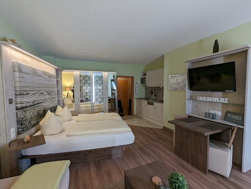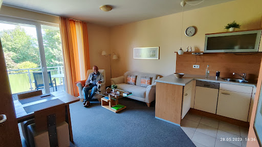 Read moreWir waren zu Gast in dem Ferienhaus und hatten die Wohnung „Krebs“ für 4 Personen plus Baby gemietet. Wir hatten zwei Schlafzimmer, ein Wohnzimmer mit Essbereich, eine kleine Küche, ein Bad mit Dusche und WC sowie ein einzelnes WC. Zudem gibt es einen Parkplatz pro Appartement. Es gibt ein kleines Fitnessstudio und eine Sauna.