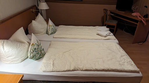 Read moreTwo propetaries are still running with etiquette a hospitality business.I have enjoyed the old fashion accomodation for a month, an the restaurant every day at breakfast and few evenings the great house german meals.As a owner for a equivalent business I consider that the two owners 60+ are offering great services.Staying at this hotel you add a plus for their monthly...