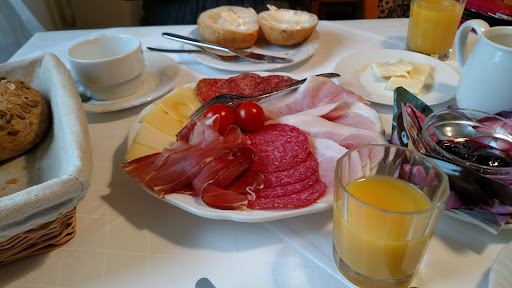 Frühstück kostet pro Person 5€- dies ist im Zimmerpreis bereits enthalten. Es gibt kein Buffet, es wird im Frühstücksraum an den Tisch gebracht. Es gab keinen koffeinfreien Kaffee (es wurde mitgeteilt dass dieser ausgegangen wäre). An Tag 2 war auch keiner da. Auswahl ansonsten zwischen Tee und Kaba. Es gibt auf Wunsch Orangensaft und ein Ei. Jedoch wird nicht gefragt, ob es weich oder hart gekocht sein soll. Man bekommt ein kleines Gefäß mit selbstgemachter Marmelade, keine Nachfrage welche man möchte. Es gibt eine Wurst und Käseplatte. Semmel Auswahl war sehr gut, es gibt nur Butter, es wurde kein Frischkäse angeboten.
