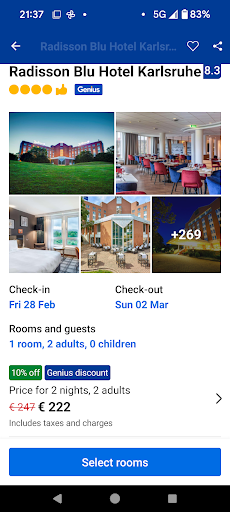 We are Radisson members, and my husband stupidly paid €100 MORE for our two nights than we could have got on Booking.com without being members (Fri 28 Feb - Sun 2 Mar).