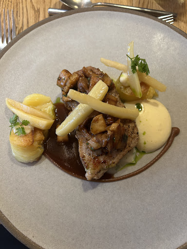 Abends im Restaurant wurden wir wieder sehr herzlich empfangen und an unseren Tisch gebracht. Es gab warmes Brot mit zwei Aufstrichen und einem Kräuteröl zu Beginn. Dann folgten der Gruß aus der Küche, ein Salat, eine Suppe, ein Hauptgang und ein Dessert. Zwischen den Gängen ließ man sich Zeit und fragte uns ob wir noch warten wollten oder der nächste Gang serviert werden durfte. Die Einrichtung war auch hier aufs Detail perfekt in Szene gesetzt. Man erkennt hier einen roten Faden. Die Fructoseintoletanz meiner Freundin haben wir bei der Buchung mit angegeben. Vor dem Essen kam das Personal freundlich auf uns zu und sprach das komplette Essen mit uns durch. Die Köche hatten sichtlich Spaß daran kreativ Alternativen zu finden. Wir hatten zu keinem Zeitpunkt das Gefühl Umstände zu bereiten. Wir haben zwar nicht im Pavo (1 Michelinstern) gegessen, jedoch merkt man dass hier mit Stern gekocht wird. Auch der mittags bestellte Kaiserschmarren wird deutlich auf ein ganz neues Niveau gehoben. Das Restaurant ist zwar deutlich gehoben, jedoch keinesfalls abgehoben. Alle Gäste sind willkommen.