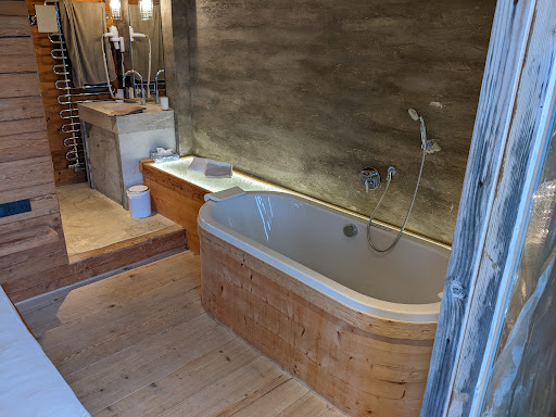 Room: 4/5 - The room was fabulous. It's nice to visit a hotel in the Alps that has a modern spin on the traditional. We had a couple of issues with puddles due to the open shower/bathroom, it didn't ruin the moment but I would expect a better system for the price. The room also shared a balcony with another room which was luckily empty, but I felt this should have been mentioned in the description. Great WIFI.