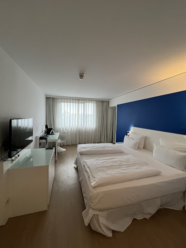 Read moreThe Hotel Frankfurt Messe Affiliated by Melia, a hotel that does not have much luxury, unfortunately when I went to eat breakfast the next morning at 9:00 am, the dining room was completely full, without a table available: 00 am, the dining room was completely full, without a table available, to which I had to look for a table on my own to have breakfast, since I asked a guy in the dining room where I could eat, and he told me to look for a table outside the dining room, ie in the lobby of the hotel, which is considered poor service, I was not even accompanied to the place, on the other hand the guy who attended me did not understand English to the point that what I asked for, he had to indicate his companion at the reception, on the other hand the menu of the New Year's Eve dinner, was in German in its entirety, no one did it in English which I did not find pleasant either, I must point out that the hotel does not have room service, in my room a bathrobe was missing, which I had to go down to the reception, which seems illogical to me because if I am booking a room for two people a month in advance and incidentally the room with the highest price as the JUNIOR SUITE, the minimum is that everything is inside the room, not to mention that the next day I had to look for the two cleaning girls to please put paper in my bathroom as well as plastic bags for women's intimate waste and coffee, that is why I can assure that the service was NOT the...