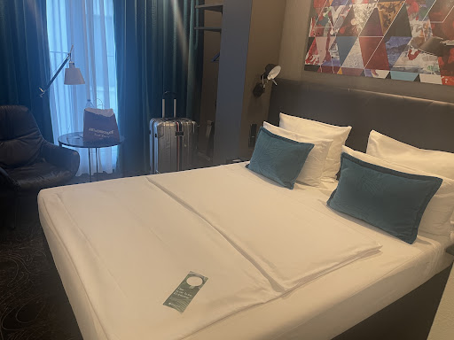 Read moreThere are a few Motel One branches around Frankfurt including this branch along Berlinerstrasse in the Old Town. It is roughly a 15-18 minute walk from Hauptbahnhof and 4-5 minutes to Römerplatz in the main sightseeing area around Old Town. ||We made our reservation through booking.com. Confirmation was emailed immediately. We were very well received upon arrival and allowed to checkin a couple hours early which was really nice. Payment processed at arrival, express check-out available. They also have luggage storage if needed. Lobby area at this Motel One is large and very nice. Plenty of seats to relax and unwind. There is a nice bar as well for those who fancy a round of drinks in the evening. They also serve breakfast in the downstairs seating area each morning. ||Our room was exactly what is expected of Motel One properties, rather basic, no frills room but they get the important parts right. Space a bit on the small side but enough if you don't have oversized luggage. A few hangers and closet like space to hand clothing if needed. Sitting chair and small circle table works for a simple laptop if you need to do a bit of work. Heating, lighting, TV, wifi and room safe all worked just fine. Bed comfy enough. Bathroom also basic, shower worked just fine. No kettle, coffee, tea or water provided in the room. Overall a bit stripped down compared to traditional hotel rooms but its fine if you really just need a place to sleep and keep your luggage...