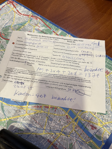 Read moreWo soll ich zuerst anfangen? Die Rezeption befindet sich im 2. Stock, also erstmal Treppen steigen. Wegen einem Anruf lässt der Besitzer uns erstmal 10minuten bei sängender Hitze vor der Theke stehen bis wir dann endlich einchecken konnten. Es war ein Doppelzimmer für mich und meinen Verlobten. Insgesamt 64€ für eine Übernachtung, haben für zwei gebucht und nicht mal Frühstück dazu und er stellt uns komischerweise 136€ in Rechnung. Woher auch immer die zusätzlichen 9€ kommen, die nicht mal Frühstück beinhalten. Kommen wir zum Zimmer. Es war im 4. Stock. Der Fahrstuhl ist mir mehr als unheimlich, da mir einige Kundenrezensionen verrieten, dass einige schon darin feststeckten. Nachdem ich schweißgebadet ankam machte das Zimmer erstmal keinen schlechten Eindruck, bis man zweimal hinschaut und die Mängel entdeckt. Ein Kühlschrank den man erstmal einstecken muss, ein Fernseher der nicht funktioniert, ein kaputter Mülleimer, eine kaputte Nachttischlampe, drei Bilder an der Wand, die das große Zimmer immer noch leer zeigen ließ, die Aussicht aus den Fenstern, naja, Tauben die brüten und jede Menge Dreck und ein runter gekommenes Haus vor der Nase. Die Nachbarn hört man egal um welche Uhrzeit, da die Wände so dünn wie Papier sind, ein großer, nasser Fleck an der Decke, eine Deckenlampe ohne Schirm und im Sommer das größte Problem: keine Klimaanlage oder Ventilator. Meine erste Nacht badete ich hier im eigenen Schweiß, weil sich niemand hier um etwas kümmert und keine kühle Luft rein kam, nur hunderte Insekten. Der Kühlschrank hat auch keine Abkühlung gebracht, da er nur handwarme Luft raus blies. Am zweiten Tag fragte ich den Besitzer ob er wenigstens Besteck zum etwas essen hätte und einen Ventilator weil es nicht auszuhalten war. Plastikbesteck bekam ich dann und auf den Ventilator, zeigte er mir sein Handy und den Wetterbericht, dass es heute Nacht 13 Grad werden. Naja herzlichen Dank, aber ein Ventilator hätte ich eher gebraucht. Was bringt mir 13 Grad wenn man abends von dem Lärm der Straße keine Fenster groß öffnen kann, außer du willst nicht schlafen. Die Dusche war okay und die Toilette auch. Das Doppelbett bestand aus zwei nicht zusammen passenden Einzelbetten, und bequem ist auch etwas zu viel gesagt. Alles in Allem zum Schlafen ja, aber den Abend da zu verbringen eine Horrorvorstellung. Ab 22 Uhr ist hier niemand bei dem man sich beschweren kann. Traurig aber hier gehe ich auf jeden Fall nicht...
