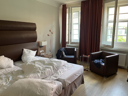 Read moreEin sehr schönes Hotel in einem historischen Gebäude, schöne Zimmer mit viel Holz und gemauerten Wänden, aber mit moderner Einrichtung und edel ausgestattetem Bad. Schöne Frühstücksauswahl mit freundlichem Personal, das Restaurant ist sehr geschmackvoll und edel eingerichtet. Restaurant mit gehobener Küche, das diverse Auszeichnungen erhalten hat, wobei wir dort nicht zu Abend gegessen haben, da keine Tische mehr frei waren. Ein kleiner Minuspunkt war das schlecht verfügbare WLAN (ständiger Verbindungsabbruch, mit WLAN konnte nicht einmal die - nur virtuell verfügbare - Gästemappe geladen werden). Das Fenster konnte nicht verdunkelt werden (es ist zwar eine Vorgangschiene dran und Halterungen für einen Raffrollo, aber weder Vorhang noch Rollo), die Matratze war extrem weich bis durchgelegen. Ansonsten war es ein...