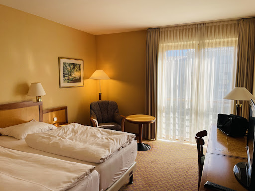 Read moreThe large "penta suite" has two adjacent rooms, one with a large queen size bed, the other with two couches that can be used as beds, too. Both have large flatscreen TVs that could connect with our mobile phones, so we could watch Netflix while our toddler was fast asleep "next door". Mattresses are a little on the stiff side of things. Each room of the large suite has their own bathroom. The included soaps and stuff in the bathrooms were nothing to write home about but would suffice if one would forget their own supplies.The direct access to the parking garage via the elevator was a nice touch. Central Air conditioning worked quietly and efficiently, but is switched off by default when you first enter your room.Everything was very clean, albeit a little " lived in". The food we ordered to out room was pricey but very good. The staff was very friendly and helpful with anything we as a family with a toddler might need - much more friendly than you normally encounter in this city's service industry and it's usually very direct,...