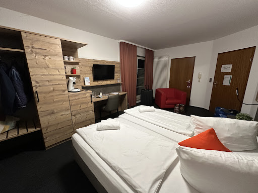 Lovely warm, clean and comfortable place to stay, close to the heart of Gießen. This is the second time we've stayed here, last time in 2014 and it was just as good this time as it was the last. The staff are very friendly and extremely accomodating, we had to leave early for the airport and the kitchen lady started work 45 mins early, just so we could have breakfast before setting off. We were lucky enough to be there at Christmas time and the attention to detail with the decorations is outstanding. I am sure we will be back again in 4...