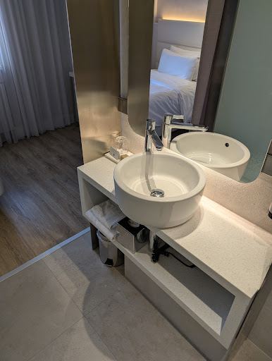 The hotel rooms are very modern, with bathrooms that look to have been recently remodeled. I appreciated the solid surface wood and tile floors instead of carpet. The bed was very firm; too much for my liking, and it was difficult to get comfortable sometimes. However, the pillows and duvet were of good quality. On the third day of my stay, a strange odor was present in the shower area and lasted for about a day. It suddenly went away, and I do not know the cause or if this is a...