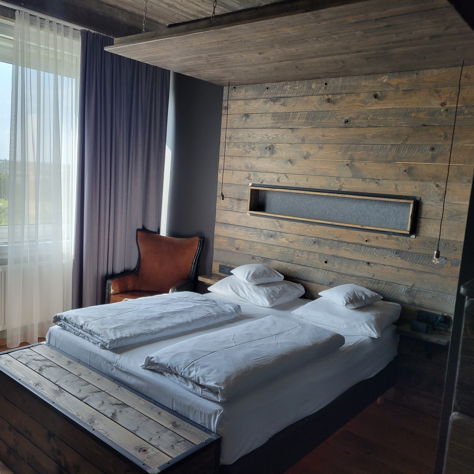 Read moreThe hotel is designed to be cool. But there are details that need attention. The floors of the room were very dusty and dirty. The linens and bathroom were clean and new. The bed was comfortable. The shag carpet in the hall gave me the creeps - if the floor of the room was dirty - what is lurking in the hall carpet? And it was not easy to roll my suitcase through the carpet. There is a weird lightshow in the bathroom and a strange one-way mirror from the room into the shower - why? There is only one somewhat comfortable chair in the room which left the other person sitting on the bed or the chair for the desk. There is no refrigerator in the room. The parking is expensive although we were able to find free street parking on the second night. The windows on the exterior of the building were very dirty - so the view was obscured. There weren't many people staying at the hotel so it was quiet but if it was full I believe that there would have been noise from room to room. Would find somewhere else the next time we are...