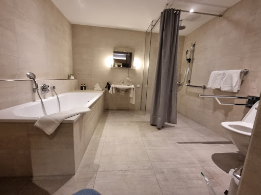 I liked the breakfast. While the atmosphere was quiet during the week, on a Sunday morning there was a lot of hustle and bustle, which for me was too loud. There is a pancake machine, which is nice. When I politely asked about maple syrup I felt a bit gaslit by a member of staff, who told me that I should use honey instead and seemed a bit taken aback by my request. I would have preferred simply to be told that there was none. There are lots of options available at breakfast, but they are the same every day. The breakfast room feels a bit too spacious, almost like a conference room. There is outdoor seating as well, but be prepared for the smokers.