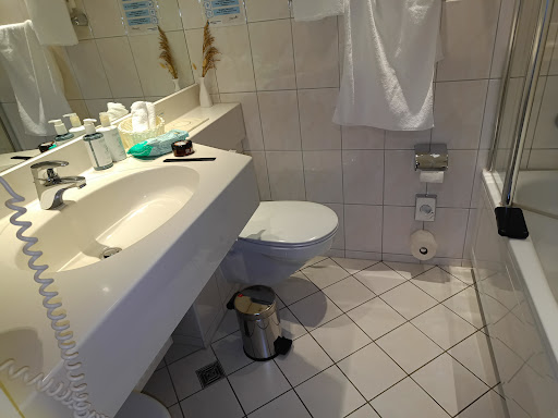Wir haben ein kostenloses Upgrade auf ein Comfort Zimmer erhalten. Grundsätzlich sehr gut, aber: Es ist ein behinderten gerechtes Comfort Zimmer. Im Waschbecken läuft das Wasser nicht ab. Die Dusche ist verkalkt und lässt sich daher nur schwer regulieren. Der Duschschlauch ist defekt. Nach dem Duschen steht das gesamte Badezimmer unter Wasser.