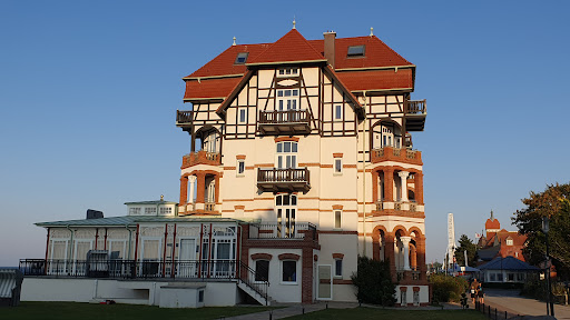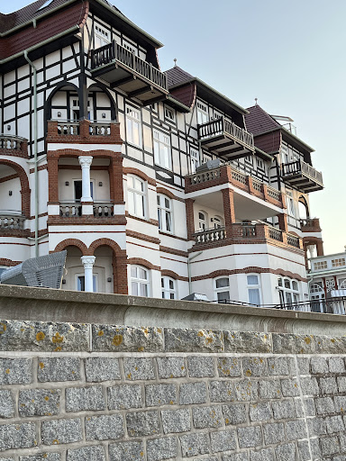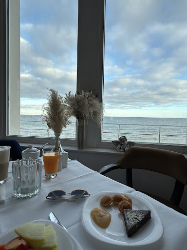Read moreAls Kind , vor ganz vielen Jahren, war ich in diesem Haus zu einem mehrwöchigen Kuraufenthalt. Jetzt war ich auf dieses Hotel neugierig. Schön von weitem erkannte ich mein Schloss. Natürlich sieht es jetzt super schön aus. Es liegt direkt am Meer, herrlich der Blick zum Meer und der kurze Weg zum Strand,nur die Treppe runter. Im Haus befinden sich sehr schöne, moderne Zimmer, sehr sauber und wir konnten gut in dem Bett schlafen. Das dazugehörige Bad war ebenfalls ganz modern, mit allem was man benötigt. Im Zimmer ist eine Kaffeemaschine und man bekommt immer Kaffeekapseln dazu. Wenn man das Zimmer nicht reinigen lässt, bekommt man einen Gutschein, den man im Restaurant einlösen kann, fanden wir toll. Weiterhin befinden sich im Haus der Spa - und Wellnessbereich, sowie der Fitnessraum. Im anderen dazugehörigem Hotel befinden sich die Rezeption und das Restaurant. Dort haben wir unser leckeres, sehr gutes Frühstück eingenommen, auf der Terrasse,herrlich,mit Blick zur Ostsee. Der Service ist lobenswert. Zum Geburtstag bekam ich vom Hotel ein kleines Törtchen mit einer Kerze und eine sehr nette Geburtstagskarte mit lieben Worten. Noch einmal ein großes Dankeschön für diese nette Geste. Die Hotelanlage liegt am Anfang der langen Promenade. Von hier aus kann man Spaziergänge bis zur Seebrücke, zum Hafen und weiter......machen. Kleine Restaurants, viele Bänke laden zum Verweilen ein. Zum Glück war das Wetter schön und so konnten wir auch am Strand liegen und in der Ostsee schwimmen. Wir hatten eine wunderschöne Woche in diesem schönen Hotel. Wir danken noch einmal allen Mitarbeitern, kommen bestimmt wieder und werden es mit gutem Gewissen weiterempfehlen, beziehungsweise...