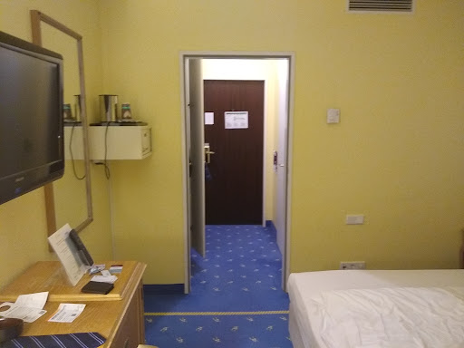 Read moreThe room is quite old, but the bed is comfortable and the bath probably has been renovated recently.|Unfortunately the frigo bar is empty, no water in and there is not the courtesy water. If the bar of hotel is closed and a client is thirsty during the night what can he drink? |The second day I bought a bottle of water in the bar of hotel, 1 liter for 7 euros from my point of view is a shame. |Furthermore at my arrival i'm been nformed at the desk that the price of parking was 6 euros per day, but when I paid they asked me 11 euros and they said that 6 euros is reserved just for certain companies.|The staff of the hotel is really polite. ||Unfortunately the services of the hotel, considering that is a 4 star is...