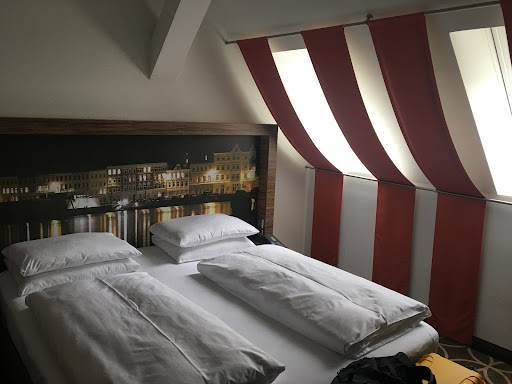 Read moreSited in sight of Lübeck's train and bus station (the HBf and ZOB), this place wins for convenience should you be coming in from Hamburg or further afield. With a taxi rank outside, you can also easily get places within the city if buses aren't your thing. The rooms, while comfortable and air conditioned, are what we'll call compact, and the lack of free coffee or water (two bottles for a three day stay) might be off putting to some. Outside the rooms, the H+ has a sauna/fitness room on the 5th floor, which is simple but enough for keeping you busy. The Breakfast is a filling buffet of the usual items you'd expect (cereal, bread, pastries, hot and cold meats, etc) with a decent bar and good beer selection (Jever and White Beer on draught). It also offers a small snack menu of pizza and the like, however you're close enough to central Lübeck to see what's on offer there. All in all, it delivers what's needed for a stay in the gorgeous...