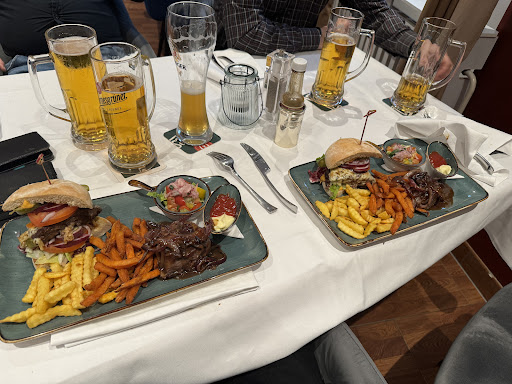 Read moreAlso gleich mal vorweg, ich bin ziemlich schreibfaul und hätte die Rezession schon lange schreiben sollen. EIN FETTES LOB an Holle und Savita (der Mann in der Rezeption und Kellner sowie seine Frau in der Küche). Ich war mit 3 Kollegen dort für eine Nacht während der Messe untergebracht. Das Zimmer war sauber und top in Ordnung. Wir freuten uns als wir hörten, dass wir im Hotel auch zu Abend essen können, erspart und nach einem anstrengenden Tag auf der Messe doch noch die Rumfahrerei. In der Lobby angekommen wurden wir sofort mit dem einheimischen Hopfentrunk empfangen, was mir sehr gefiehl. Da wir zwei Ossi's und zwei Wessi's waren beschlossen wir Ossi's den Wessi's mal die Ostdeutsche Esskultur in Form eines Würzfleisches näher zu bringen. Dafür musste eine Worchestersauce Dredner Art drauf, die Holle auch gleich in Form einer 2 Literflasche fachgerecht servierte. Bei der Wahl der Hauptspeise tat ich mich echt schwer. So schwankte ich zwischen Zwiebelrostbraten und einem Burger. Zu meiner Überraschung ging meinem Kollegen genau so und so fragten wir, ob die Küche das nicht für uns jeweils zur Hälfte auf den Telle packen könnte, da wir das niemals gerecht hinbekommen würden. Holle fragte kurz ob uns schonmal wer ins Essen gespruckt hat aber da dies bei uns berufsbedingt sicher schon des Öfteren passiert ist hatten wir kein Problem damit ;-) Und so kam ein halber UNGLAUBLICH GEIL SCHMECKENDER Zwiebelrostbraten (mir läuft beim schreiben das Wasser im Mund zusammen) und ein halber Burger auf unseren Tellern an (siehe Bilder). Irgendwie ging aber zwischen den jeweils halben Portionen und den 5-7 Bier noch ein Nachtisch. Diesen servierte die Küchenfee Savita persönlich (ich glaube sie wollte nur mal kucken was wir für ein bekloppter Haufen sind). Auch der Nachtisch war ein Gaumenschmaus vom Feinsten.
