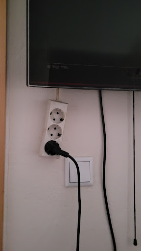 Es gab zu wenig Steckdosen. Wir waren zu dritt & hatten insgesamt nur 4 Steckdosen zur Verfügung. 2 am Bett - wovon eine von der einzigen Nachttischlampe besetzt war. & 2 an einem Verlängerungskabel, welches zwar über die Tür hinweg verlegt war, dann allerdings einfach Unter dem Fernseher runterhing.