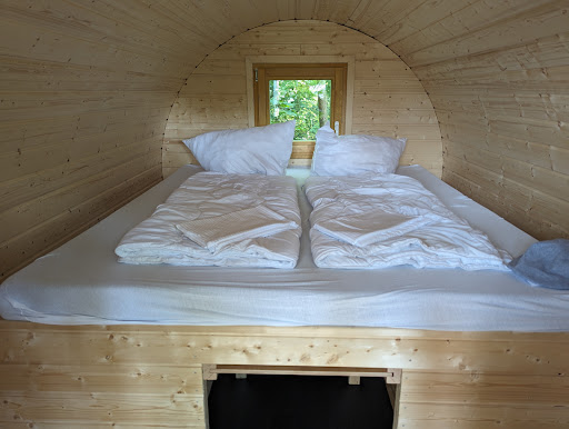 We had rented a camping barrel which was equipped with a double bed, bed linen and an outdoor table. The site's two camping barrels were conveniently located in a separate area with many trees that formed natural shade. Although the barrels are very simple, we found that they worked well as affordable accommodation for a couple of nights.