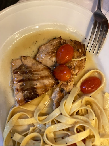 Read moreVorneweg möchte ich erwähnen, wenn ich null Sterne vergeben könnte, würde ich dies tun. Waren heute anlässlich einer kleinen Feier dort essen. Mein Vater hat das Lachssteak mit Tagliatelle für 19€ bestellt. Was dann serviert worden ist, war alles andere, aber kein Lachssteak!!! Das sehr flache Fischfleisch, was optisch nach einem Seelachs aussah, war auch noch total übergrillt und trocken (Siehe Foto). Naja, was soll ich sagen das ganze zog sich durch unsere bestellten Gerichte durch. Die Tagliatelle Salmone, was ebenfalls alles andere außer richtiger Lachs war, Tortellini al Forno geschmackslos und verkocht (das gibt es als Fertiggericht besser) und als Krönung löste meine Pizza Parma nach einem Stückchen, so einen sauren Nachgeschmack aus, dass ich selbst 2 Stunden später nach ausreichend Getränken noch einen säuerlichen Geschmack im Mund habe. Auf unsere sachliche Beschwerde wurde pampig reagiert. Das einzig positive war, dass wir nicht mal unsere Getränke bezahlen mussten, obwohl wir dies anboten. Dieses Restaurant kann ich absolut nicht weiter empfehlen und gehe dort nie wieder essen. Eigentlich hätten wir uns diesen Abend schöner...