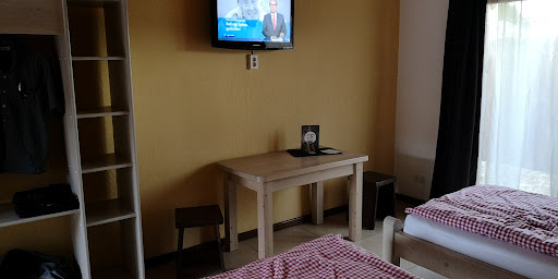 Tolles Motel mit Amerikanischem Flair, das nur unweit von der Autobahn entfernt liegt und daher optimal für eine Durchreise geeignet ist. Parken kann man direkt auf dem Gelände for den Zimmern, könnte jedoch etwas eng werden wenn alle Zimmer vermietet sind. Es wirkt alles noch relativ hochwertig und neuwertig, abgesehen vom TV mit der echt grausamsten Fernbedienung die ich je erlebt habe. Der Gastbereich ist sehr einladend, hat einen tollen Barbereich und sehr hochwertige Holzmöbel. Sanitäranlagen sind absolut Top sowohl in Zimmern als auch im öffentlichen Bereich. Das Frühstück ist für den Preis ziemlich gut vor allem auch der Kaffee, jedoch ist das Frühstücksbüfet selbst etwas unpraktisch eng aufgebaut, sodass man sich schnell mit anderen Gästen in die Quere kommt. Ich würde dringend Empfehlen sowas wie Teller und Besteck auf einer Extra Abstellfläche unterzubringen anstatt mittem in der Büfet Ecke teilweise im Regal unten drin. Die Zimmer sind geräumig und sauber und verfügen über mehr Ablageflächen und Steckdosen im Zimmer als auch im Bad, als ich in irgend einer anderen Unterkunft bisher erlebt habe. Das Bad verfügt über eine große Duschzelle mit Fenster, Doppelbrause, Seifenspendern, einem Fön, genug Handtüschern und Zahnputzbechern. Die 2 einelnen Holzbetten könnten jedoch bequemer sein, der TV funktioniert zwar in Semi HD aber die Fernbedienung ist grauenhaft. Es könnten auch mehr Kleiderbügel vorhanden sein für Hemdenträger. Es gibt einen optionalen Wasserkocher auf den Zimmern, muss man aber extra anmelden. Darauf wird man jedoch nicht hingewiesen. Die Zimmerbeleuchtung ist etwas dimm, daher weniger geeignet für Geschäftsreisende die auch im Hotelzimmer arbeiten müssen. Für ein paar Snacks und kalte Getränke außerhalb der Öffnungszeiten des Barbereichs, gibt es einen kleinen Automaten auf dem Gelände, der immer noch günstiger ist als ne Tankstelle. Leider scheint das Roadcamp momentan stark mit Personalmangel zu hadern, weshalb auch die Bar mit Restaurant nur an wenigen Tagen die Woche betrieben wird. In direkter Nähe gibt es 2 Restaurants von denen eins Typisch Deutsche Küche anbietet und der andere eher Kroatische Küche.