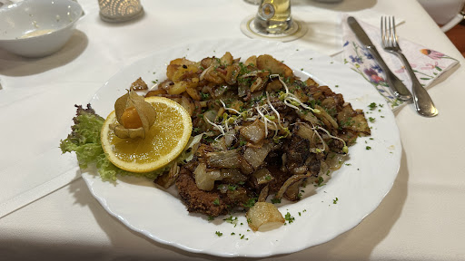 Read moreAm 26.12.waren wir zu 14 Personen, auf Einladung meiner Schwiegermutter, in Ihrem Lokal. Wir freuten uns auf das gute Weihnachtsessen im Kreise der Familie. Leider gab es für meine Schwägerin, die schon seit Jahren kein Fleisch mehr isst, keine vegetarische Alternative (Selbst Fisch wurde nicht angeboten). Dies, obwohl meine Schwiegermutter bei einem vorhergehenden Besuch ausdrücklich bei Ihnen danach gefragt hatte. Es wurden für meine Schwägerin 3 Kroketten und 2 kleine Stückchen Romanescu, ertränkt in Sauce Hollandaise, serviert. Dies wurde auch noch mit 12,80 Euro !!! berechnet. Der vierjährige Junge – Es gab noch nicht einmal Kinderportionen auf der Speisekarte – bekam Chicken-Nuggets, die er sogar bei McDonalds begeistert isst aber hier abgelehnt hat. Die Nuggets waren trocken und schmeckten wie panierte Bierdeckel. Das Steak meiner Tochter schmeckte wie zu lange warm gehalten. Einige probierten und fanden es ungenießbar. Der Sauerbraten war hart (Die Sauce war in Ordnung) der Rotkohl war totgekocht und ohne Geschmack. Der Nachtisch schmeckte wie schnell mit Pulver angerührt. Nur mit Rücksicht auf meine Schwiegermutter haben wir uns nicht lautstark beschwert. Am liebsten wären wir aufgestanden und hätten das Lokal verlassen; aber nachdem meine Schwiegermutter vor Weihnachten so positiv von ihrem Essen gesprochen hatte, wollten wir ihr nicht auch noch den Tag verderben. Zum Glück hatten noch einige Pommesbuden auf –...