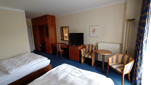 Read moreWe stayed one night. The hotel is located in Merseburg, an ancient city situated on the Saale River and within a short drive from Halle and Leipzig. Partly covered parking may be available behind the hotel at EUR 13/night, however spaces are limited and we were lucky to get one of the last remaining spaces. ||We chose the hotel based on a previous stay in 2021. Unfortunately no Business Class Room was available this time, so we opted for a Junior Suite, which turned out to be situated in a separate wing.||Our room was spacious with a separate sitting area, comfy beds and a large bathroom. The separate wing was connected to the main building by a stairway, making it necessary to carry our rather heavy baggage up and down to get it to and from our room, not very pleasant.||We visited on a sunny and warm day in August and although our room was large and nice it had no air con (available in Business Class Rooms). Even though a fan was available and windows could be opened our room was uncomfortably warm.||Breakfast was included in our rate and was good with a number of hot and cold items. We visited on a busy morning and our experience as a whole was not as quiet and relaxing as we had expected, partly due to a less successful organization of the...